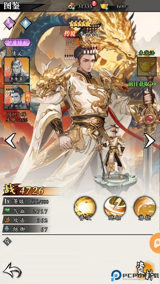(2)终极技能:对敌方单体造成200%的伤害,并为全体队友提供等同于李世民生命上限15%的护盾,该护盾具有15%的伤害减免,持续2回合。