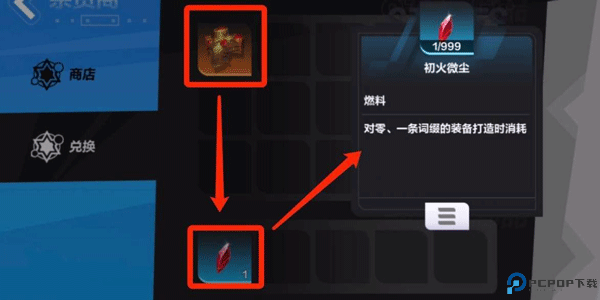 2、掉落的非传奇装备可以兑换为初火残渣,100枚初火残渣即就可在杂货铺兑换一枚初火微尘(初火源质)。