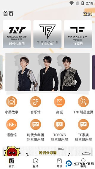 【粉丝俱乐部】按艺人分区,支持进入TF家族、TFBOYS、TNT等专区。
