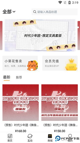 3、在商城页面有小葵花售卖、更有时代少年团《舞象之年》实体专辑预售。