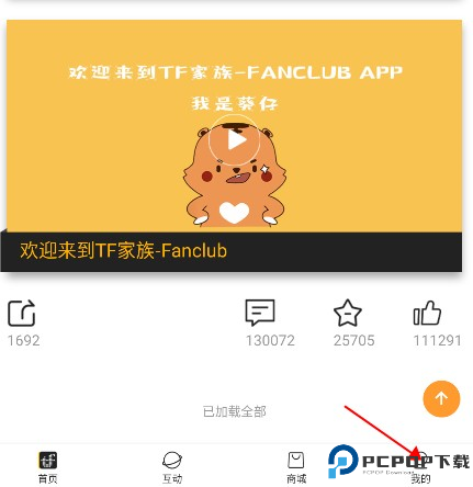1、打开TF家族fanclub后,菜单栏下方点击我的。
