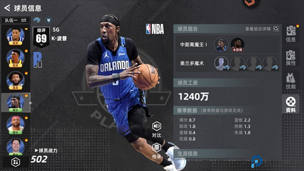 1、游戏收录了NBA各大球队的真实球员数据,包括最新的赛季表现和技能等级。