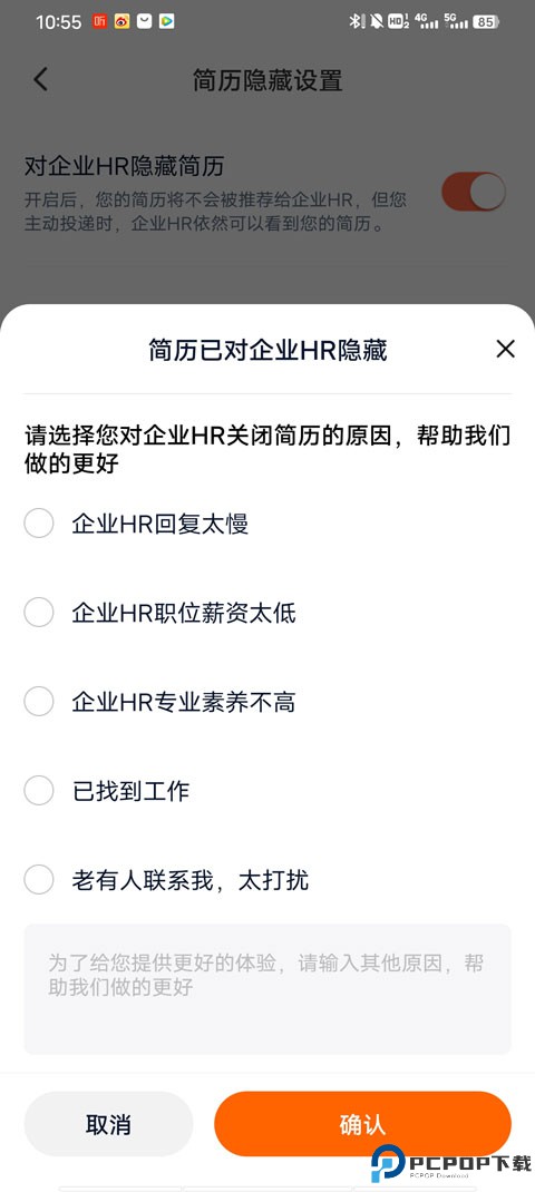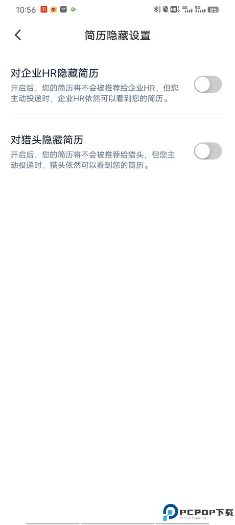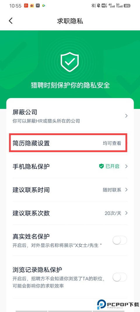 3、根据自己的需求选择就可以成功隐藏简历啦