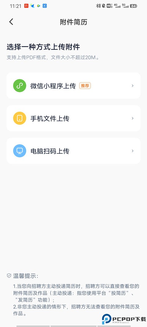 3、用户可以通过微信小程序、手机文件或电脑扫码等方式上传自己的附件。