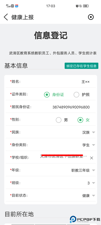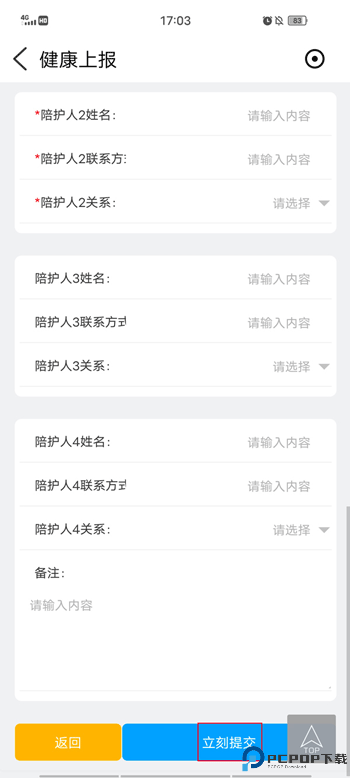 3、如家中有他人陪同,可在“目前所在地”下方的共同陪护人中依次填写名字等信息,填完点击底部的提交即可完成。
