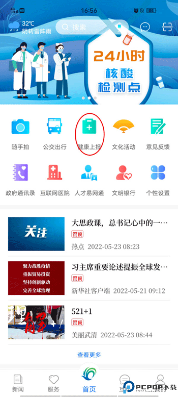 1、进入首页点击健康上报,点击“新增”。