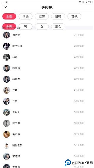 4.便捷的吉他谱搜索功能,可按歌曲或歌手搜索谱子。