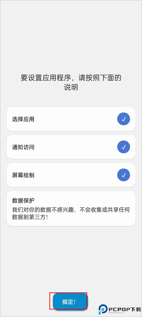1、下载安装后我们需要给软件权限,给予全部权限之后,然后点击搞定进入到功能界面。
