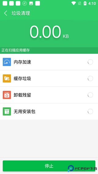 1、第一次进入软件主界面后,点击垃圾清理对手机进行内存垃圾与结存垃圾扫描