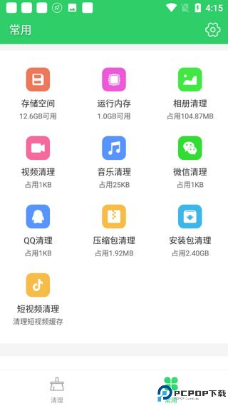 5、点击常用,可以在一个个分类功能中进行清理垃圾