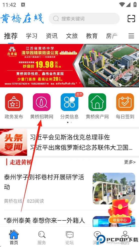 2、然后返回【首页】,点击【黄桥招聘网】即可看到本地的招聘信息