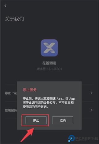 2、接着点击【停止“花瓣测速”服务】,如图所示;