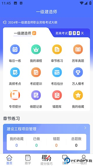 3、首页可以看到每日一练、历年真题等提高性的专栏