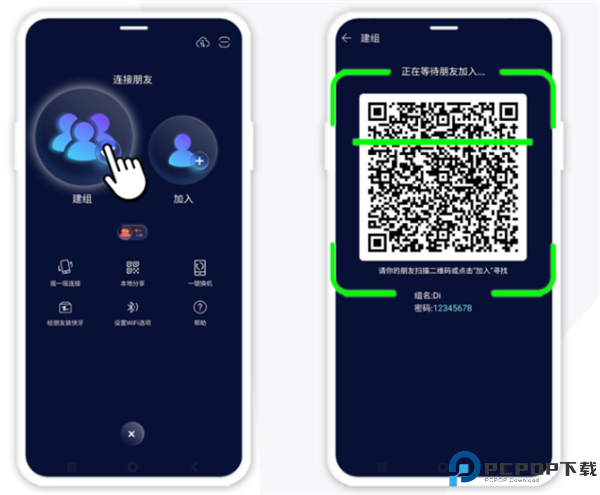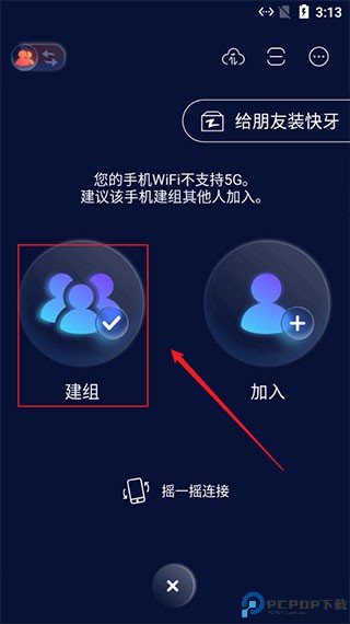 1、点击“建组”,邀请他人扫描您设备上的二维码