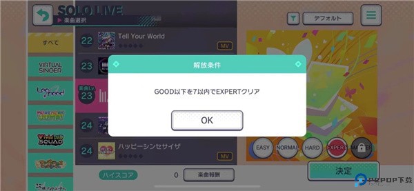 这5个难度模式前4个都是可以直接选择的,一开始第5个噩梦模式是处于锁定状态的。它需要玩家完成指定的任务才能开启,在专家模式内该歌曲的good次数少于7次,只有满足了这个条件,噩梦级别的难度模式才能让玩家参与,不然它会一直处于锁定状态的。