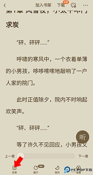 1、同样选择想要观看的小说后,来到小说阅读界面,点击小说正中间区域即可弹出菜单;