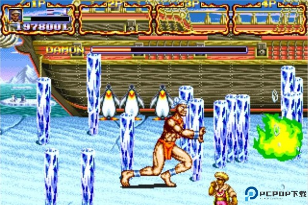 黄衣酒鬼:攻击方式是喝酒之后不仅喷火还会到处拿酒瓶乱砸(左右各砸2下共4下),能伤及敌人同伙。