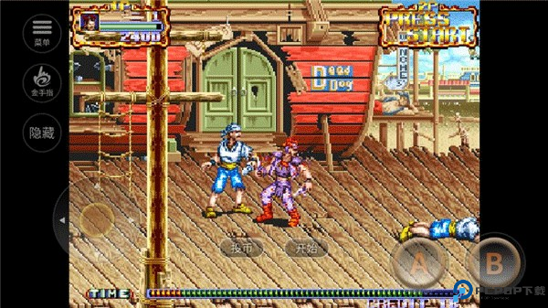 3、玩家在进入游戏后,可以控制角色进行战斗,左边控制角色移动方向,右边A键攻击、B键跳跃。