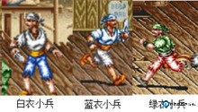 白衣小兵:特征白衣蓝裤,手持一把匕首,白衣小兵是最先出场的,攻击方式:用匕首斜划。