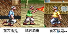 蓝衣酒鬼:第一种登场的酒鬼,攻击方式:喝一口酒之后会突然的拿酒瓶袭击人,能够伤及敌人同伙。