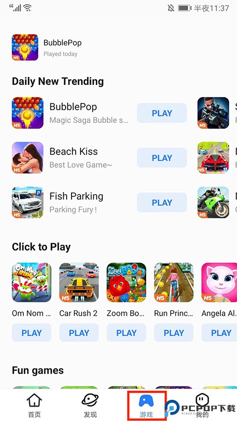 6、在游戏界面,包括每日上新、休闲等类型的游戏,不需要下载就可以直接游玩,