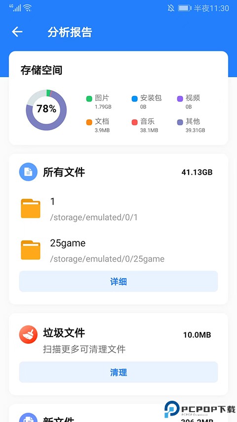 4、下方为手机的内存使用情况,可以进行扫描和清理操作,扫描结束后还会出具详细的分析报告,可以更好地了解和管理当前设备,用户也选择不需要的数据进行清理,使设备运行更加轻松流畅,
