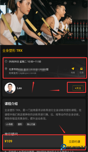 3、选择课程查看详细信息,可关注教练并点击立即约课完成预订。