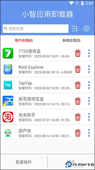2、支持应用分类,将应用分为用户应用和系统应用,应用类型一目了然;
