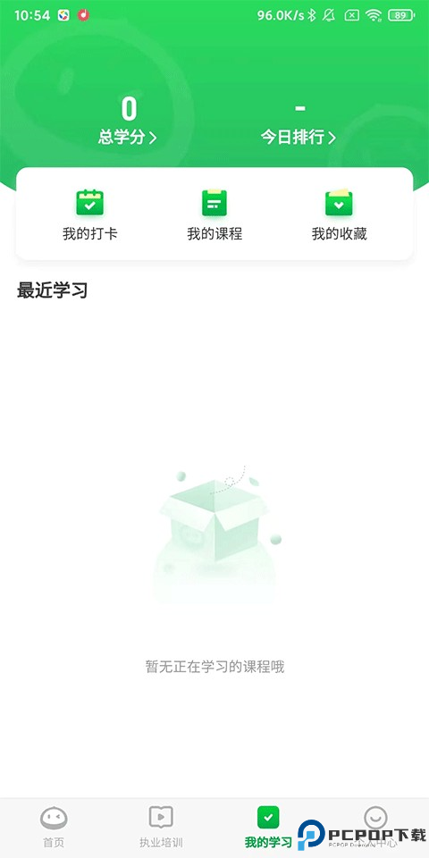 3、我的学习:打开、课程、收藏以及最近学习记录,记录总学分、当日排行;