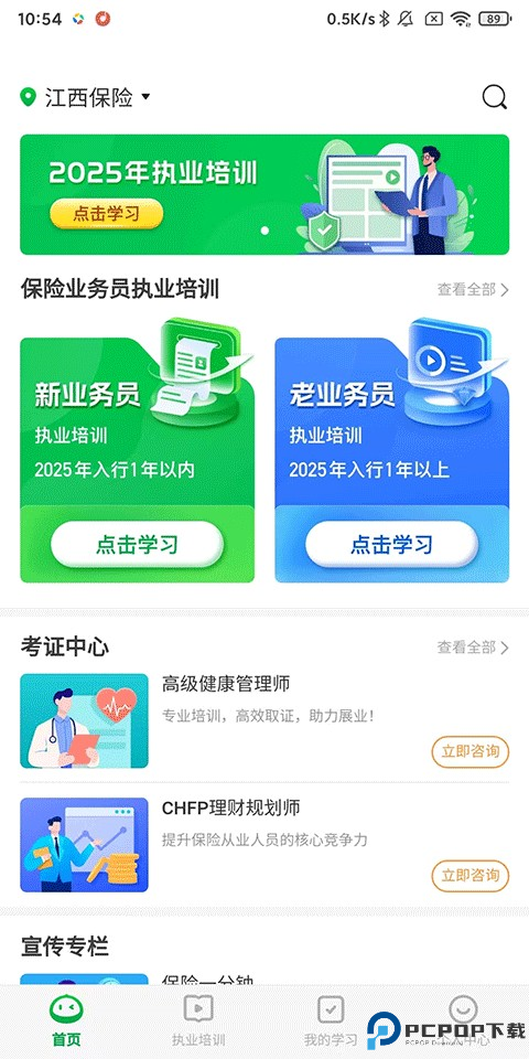 1、首页:保险业务员执业培训、考证中心、宣传专栏;