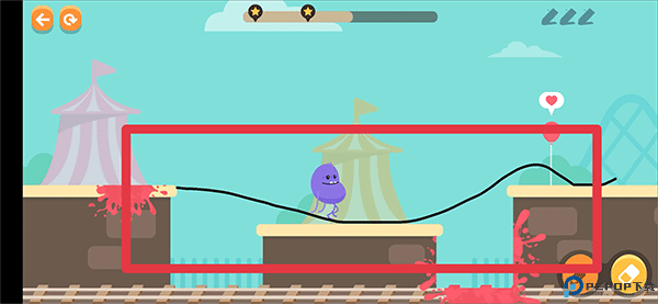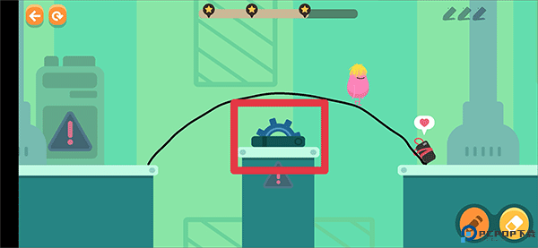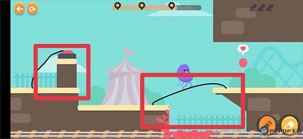 第一关:在红色按钮上面画一条线,开关触碰门打开,豆子前进去拿取气球