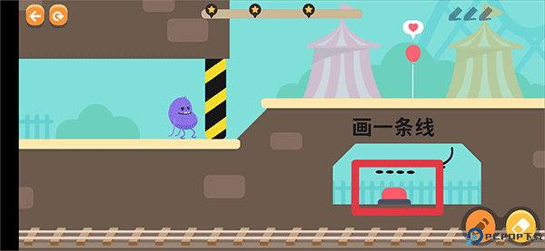 第二关:在该地方画一个坡道,然后让豆子前进去拿取气球