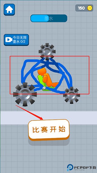 2、通过画画的方式将轮子与座椅连接起来,大家可以根据三角形的稳定性来画,不过在这里是有水墨限制的,所以玩家们需要合理利用,完成后点击“比赛开始”。