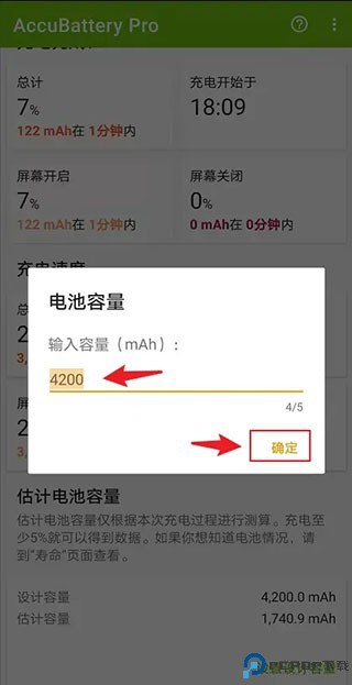 2、输入手机的电池容量后,点击“确定”。(电池容量可以在手机的配置参数中进行查看)