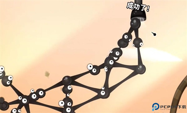 1、玩家进入游戏需要利用粘粘球搭建一个大桥,记得把距离拉长一点,并且游戏加入了重力设定,粘粘球会直接垂下来。