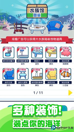 【个性化装饰】提供多种装饰品,玩家可以自由组合,打造独特的水族馆。