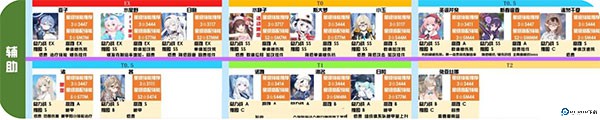 编组可大致分为:前排1个坦克学生(属性可不同)+3个输出角色(属性相同)后排1个攻击&辅助学生+1名奶妈学生。由于每个人的学生持有不同,还请根据自己的实际情况进行编组。