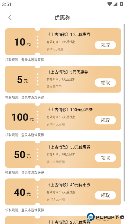 4、切换到“优惠券”界面,共有7张优惠券可以领取。
