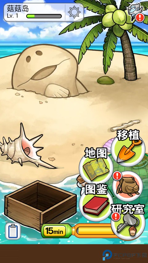5、进入游戏如图,游戏采用修复挂机玩法,玩家需要点击菇菇,来让它快速成长;