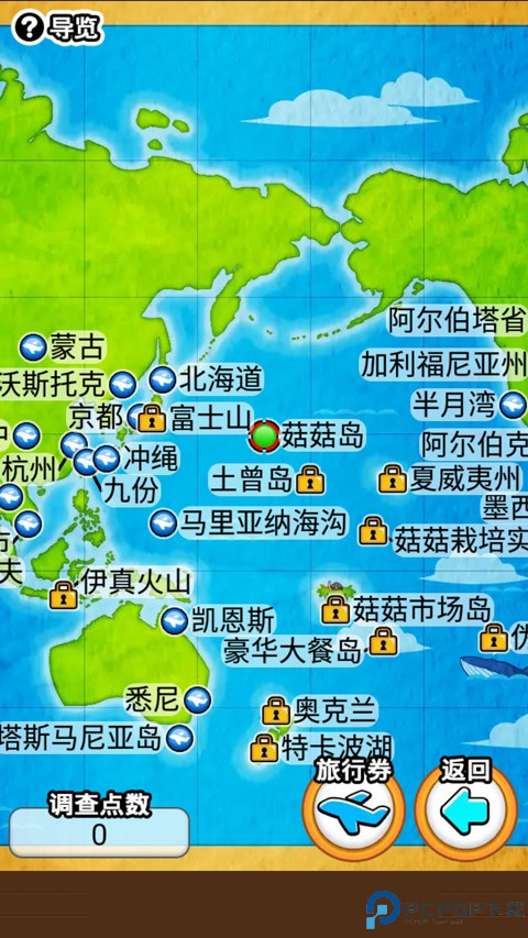 收获菇菇就能进行菇菇调查哦!随着调查进行度增加,还会解锁新的调查地点!例如澳洲的珊瑚礁和美国的辽阔山脉等,一起前往拥有各式各样的环境及文化的土地调查吧!