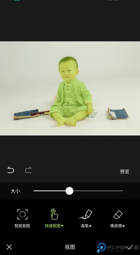 步骤4: 执行操作后,系统会自动识别人物区域,人物呈淡绿色显示,点击按钮确认操作,效果如图所示。