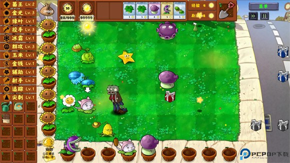 2、丰富的植物和僵尸种类:游戏中有多种多样的植物和僵尸,每种都有独特的技能和属性,玩家需要合理搭配植物来对抗不同类型的僵尸。
