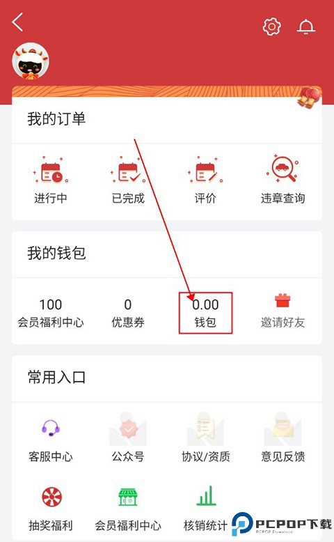 进入个人中心后,点击中间的钱包,进入钱包页面。