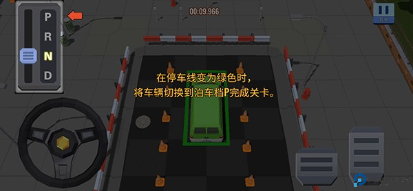 4、在停车线变为绿色时,将车辆切换到泊车档p完成关卡