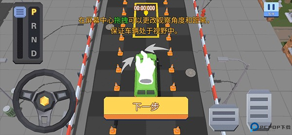 2、在屏幕中心拖拽可以更改观察角度和距离,来保证车辆处于视野中