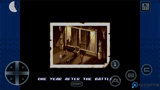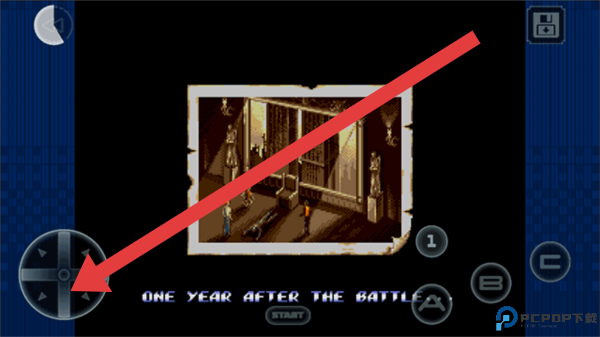 3、游戏中,使用左下角方向键(红箭头指向)控制角色移动,在“ONE YEAR AFTER THE BATTLE”场景中探索。