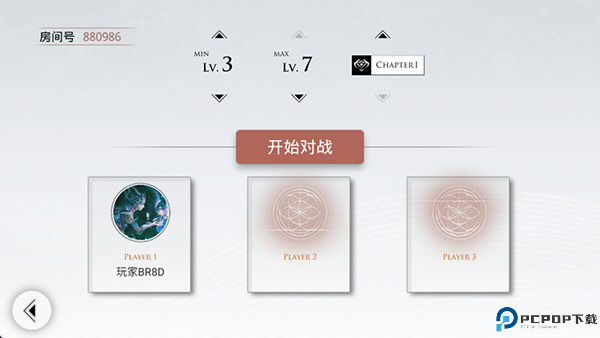 玩家自行设定难度范围和选择章节后创建3人对战房间。