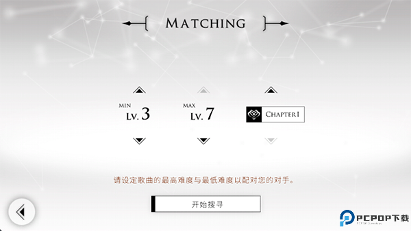 玩家自行设定难度范围和选择章节来随机匹配歌曲及对手。