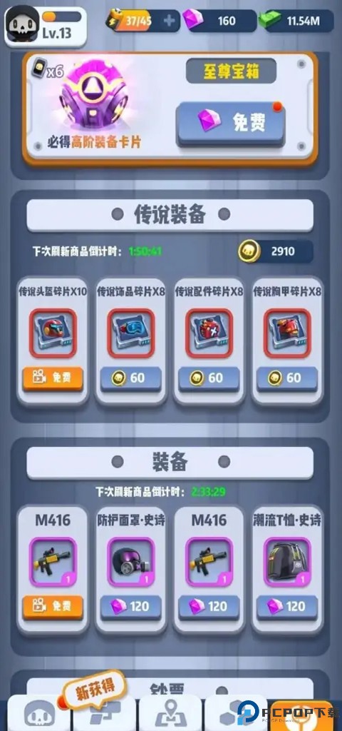 3、还可以用传说金币在商城购买防护碎片,传说金币是很容易获取的,在关卡通关、日常任务以及抽奖开盲盒等都可以获取传说金币,商城中的装备每天都会刷新,筹齐了防护碎片就及时购买商城中的武器吧。