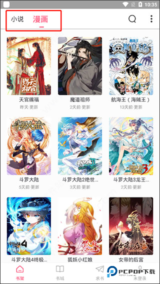 2、进入软件中即可发现主要是提供了小说和漫画;